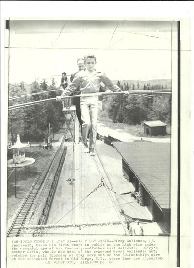 Rick (13 yrs) doing his first public walk with supervision of his grandfather, Karl Wallenda.